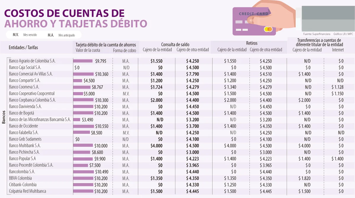 Por su parte, la Superintendencia reportó un total de 14,7 millones de tarjetas débito vigentes, que se utilizaron para hacer compras por un billón 16 mil millones de pesos y retiros por 9,1 billones de pesos en los primeros ocho meses del año.